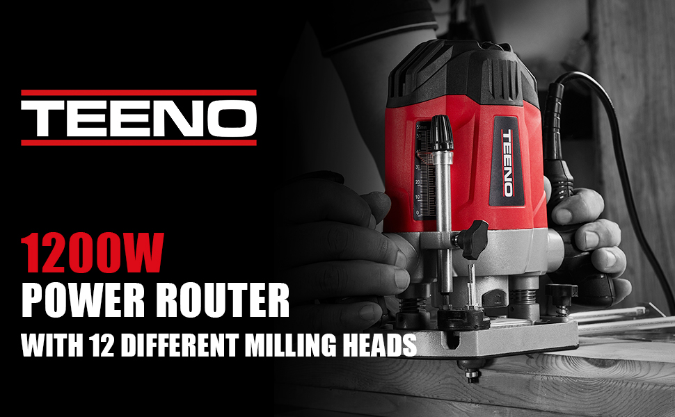 Masina de frezat Teeno, 1200W, 12 accesorii, Rosu/ Negru