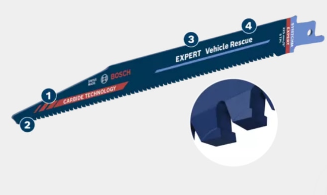 Construita cu tehnologia cu carburi (Carbide Technology) de la Bosch, panza de ferastrau sabie Bosch EXPERT ‘Vehicle Rescue’ taie rapid si sigur vehiculele moderne si va ajuta sa salvati vieti. |